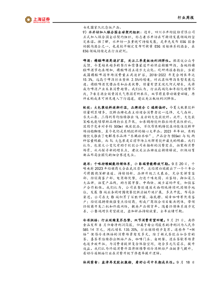 上海证券:食品饮料行业周报:双节渐近,关注消费需求恢复.pdf