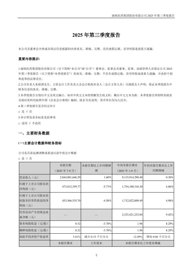 000513-丽珠集团:2025年三季度报告.pdf