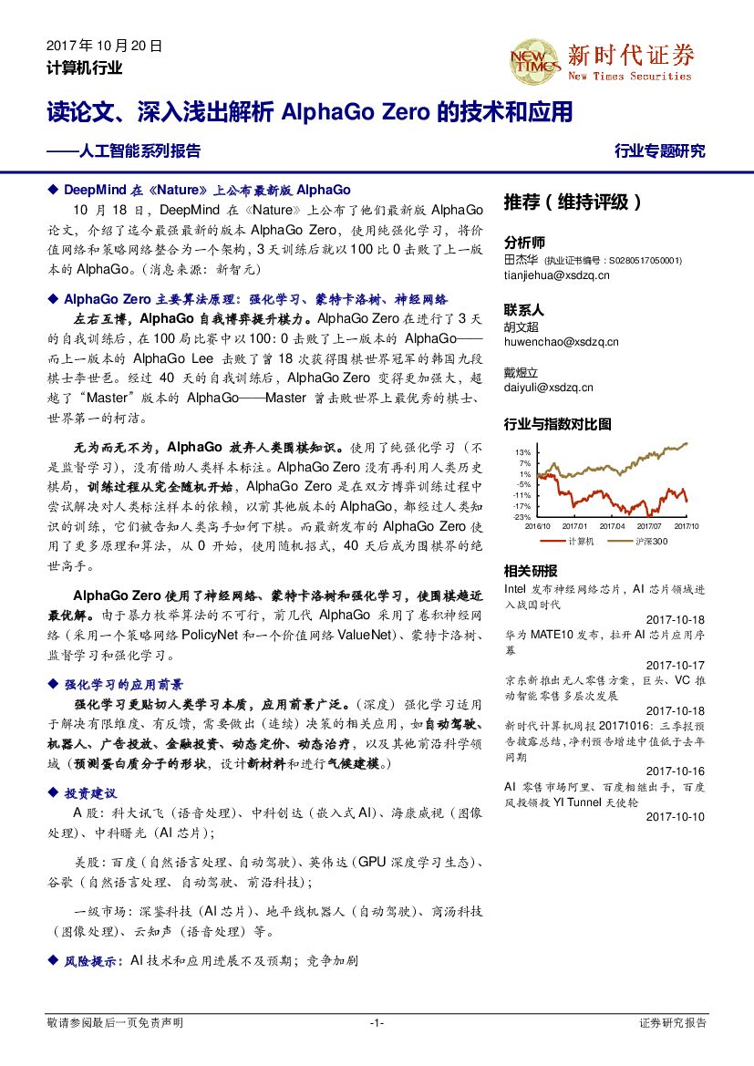 新时代证券:计算机行业专题研究:人工智能系列报告-读论文、深入浅出解析AlphaGo Zero的技术和应用.pdf