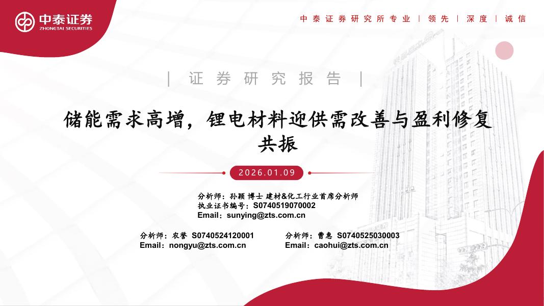 中泰证券:储能需求高增,锂电材料迎供需改善与盈利修复共振.pdf
