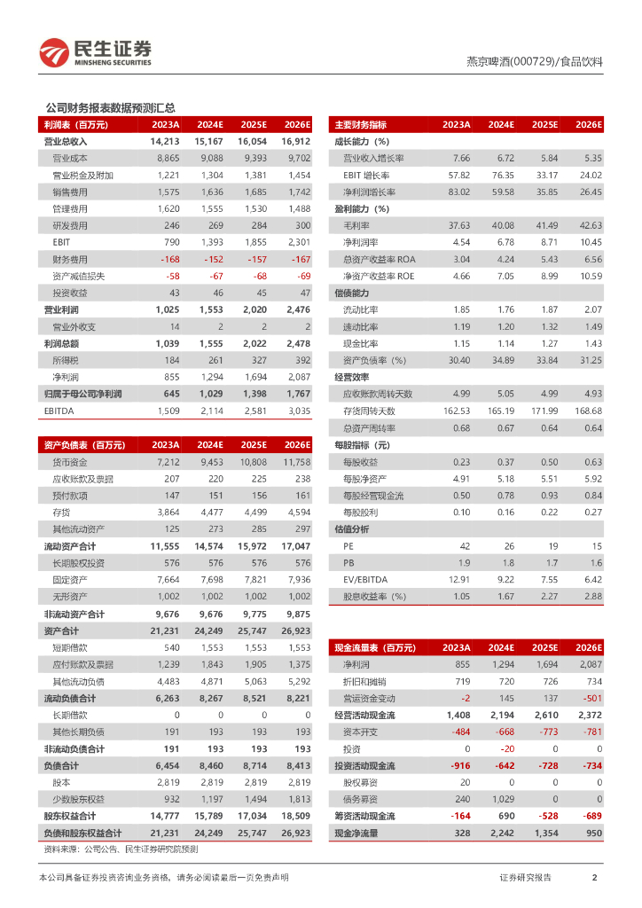 民生证券:燕京啤酒(000729)-2024年半年度业绩预告点评:扣非后利润高增,改革成效加速释放.pdf