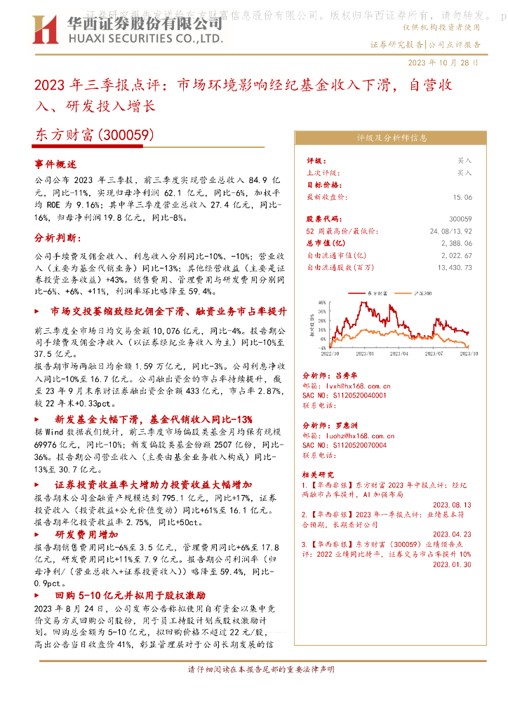 华西证券:东方财富(300059)-2023年三季报点评:市场环境影响经纪基金收入下滑,自营收入、研发投入增长.pdf