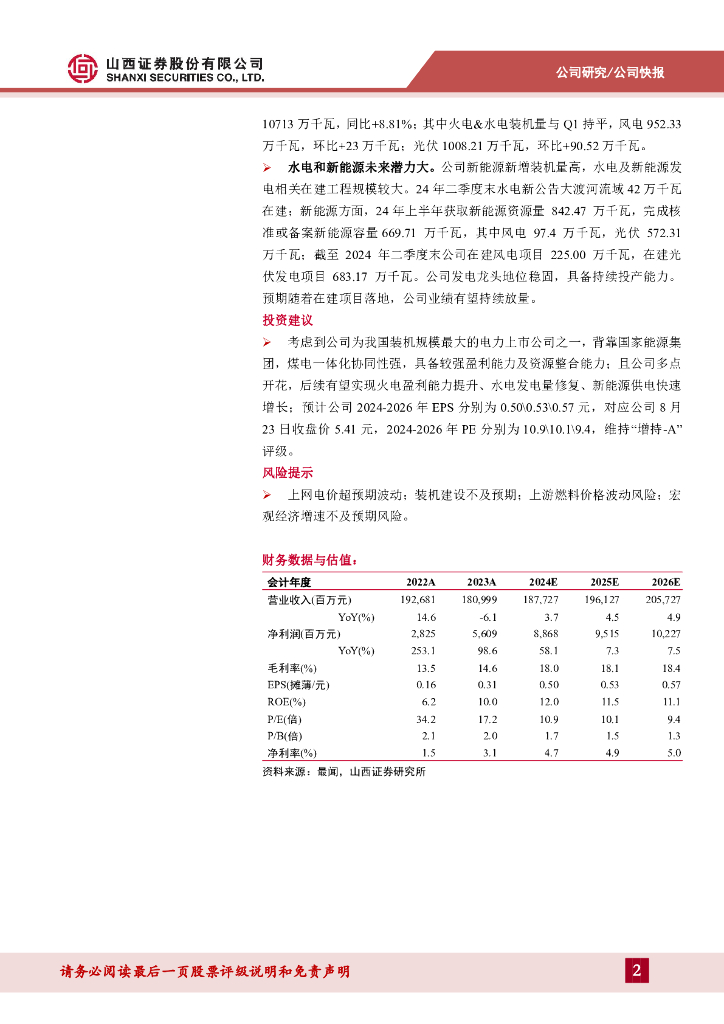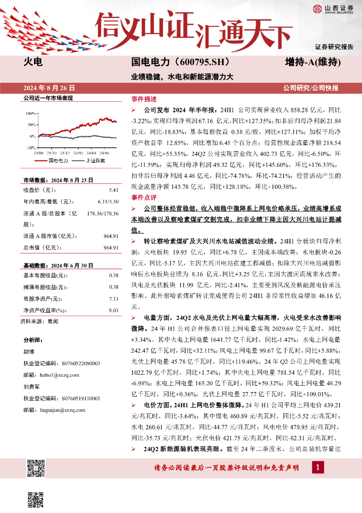 山西证券:国电电力(600795)-业绩稳健,水电和新能源潜力大.pdf