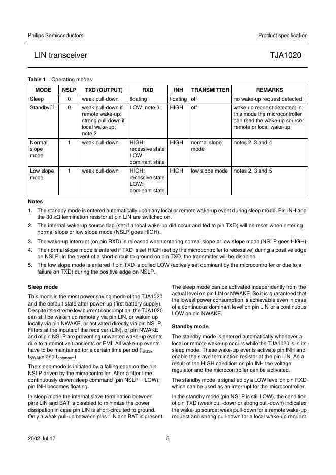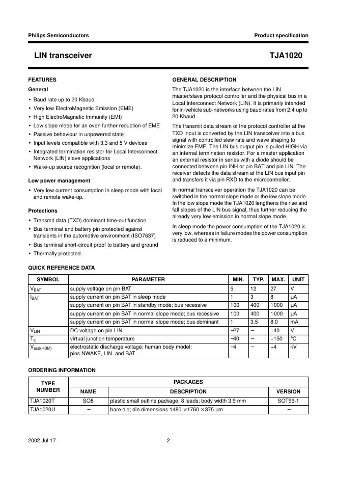 philips TJA1020 LIN transceiver 数据手册.pdf
