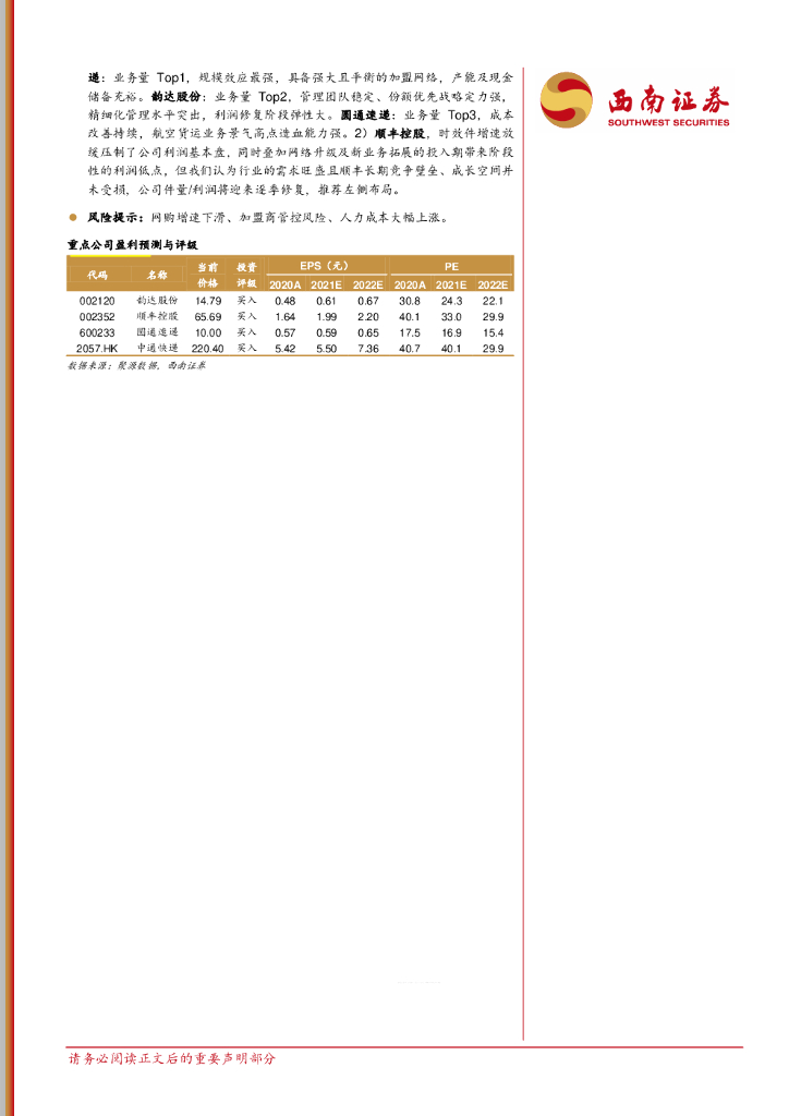 西南证券:快递行业2021H2投资策略:把握行业利润修复的反弹行情.pdf