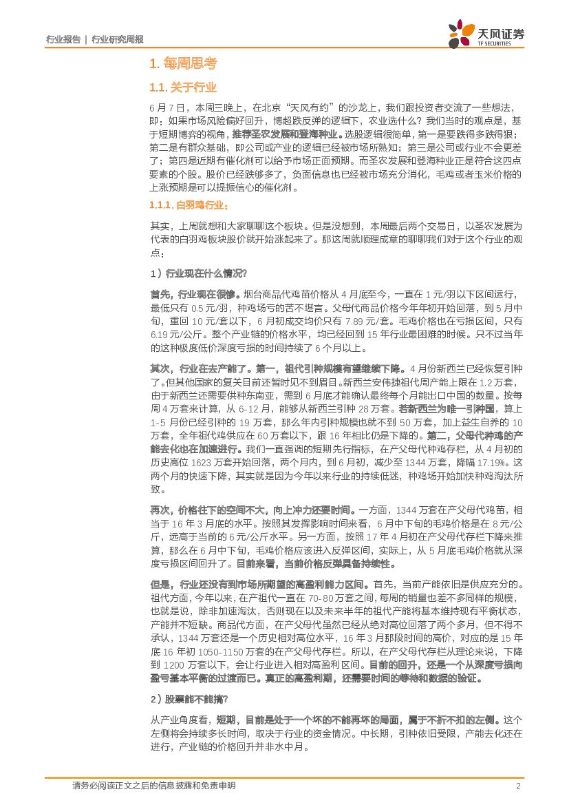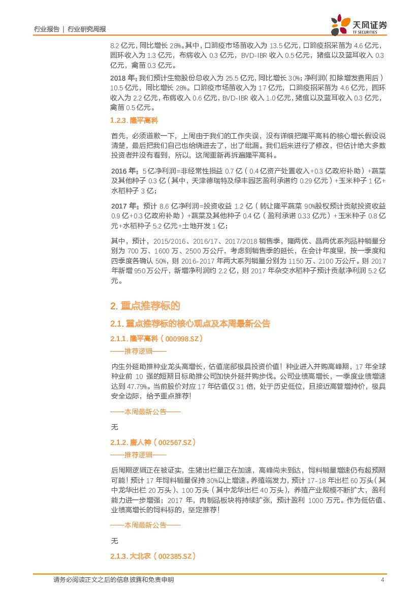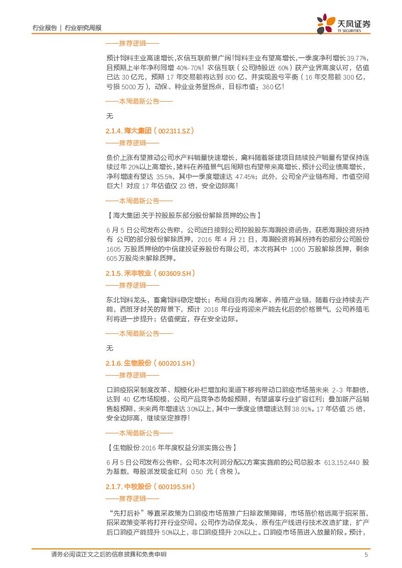 天风证券:农林牧渔:2017年第24周周报:本周重点关注禽链超跌机遇;继续重点推荐板块优质白马龙头隆平高科、大北农、生物股份。.pdf