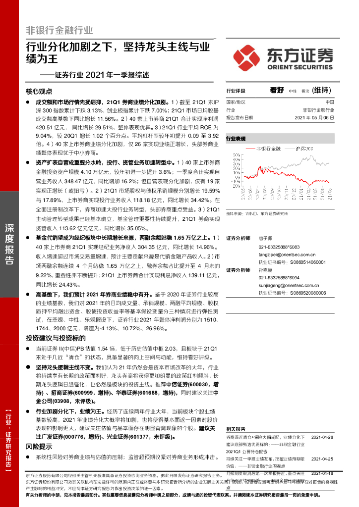 东方证券:证券行业2021年一季报综述:行业分化加剧之下,坚持龙头主线与业绩为王.pdf