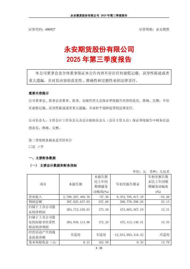 600927-永安期货:永安期货股份有限公司2025年第三季度报告.pdf