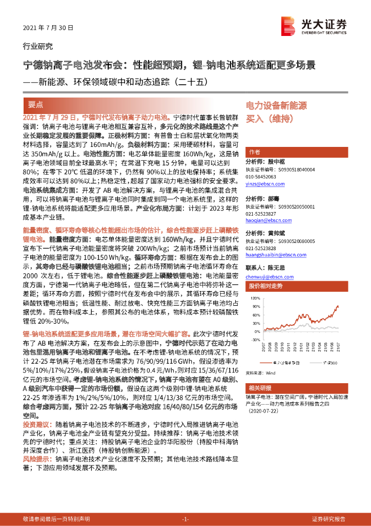 光大证券:新能源、环保领域碳中和动态追踪(二十五):宁德钠离子电池发布会:性能超预期,锂-钠电池系统适配更多场景.pdf