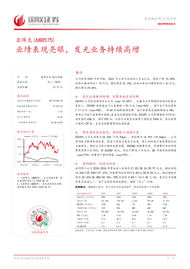 国联证券:亚辉龙(688575)-业绩表现亮眼,发光业务持续高增.pdf