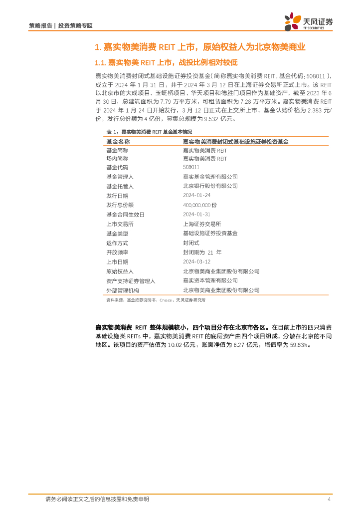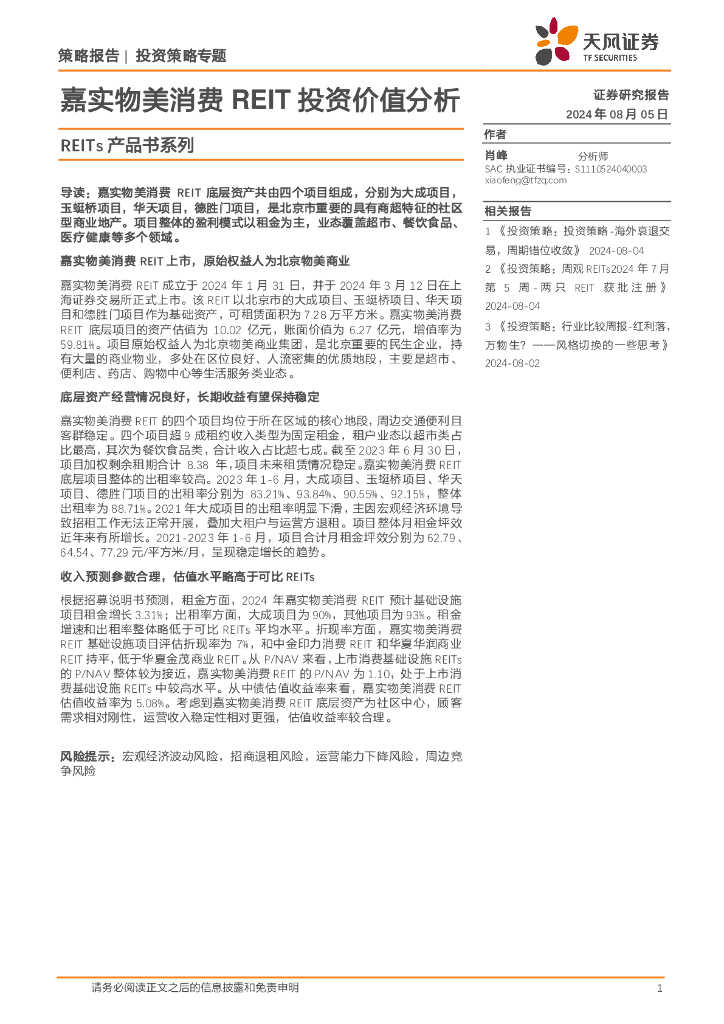 天风证券:REITs产品书系列:嘉实物美消费REIT投资价值分析.pdf
