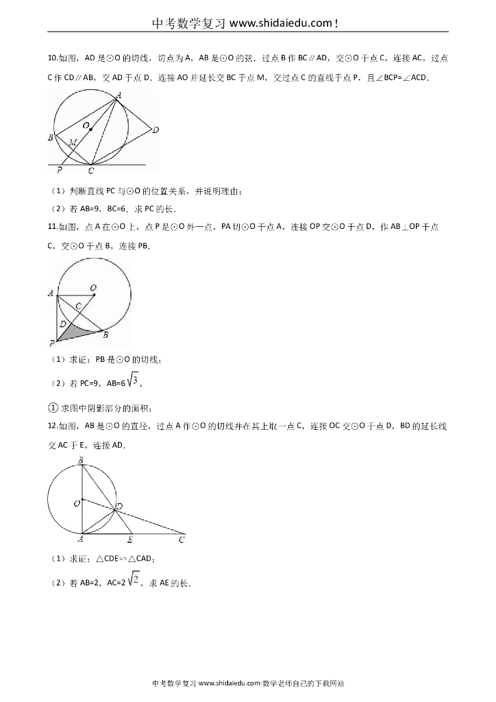 中考数学专题复习演练:圆的有关计算与证明(含答案).doc