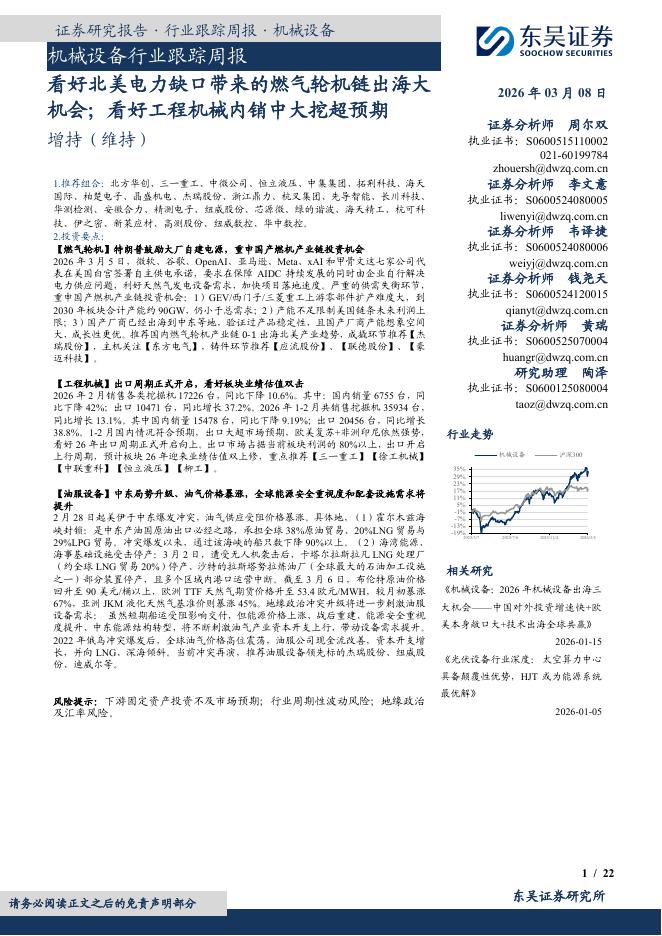 东吴证券:机械设备行业跟踪周报:看好北美电力缺口带来的燃气轮机链出海大机会;看好工程机械内销中大挖超预期.pdf
