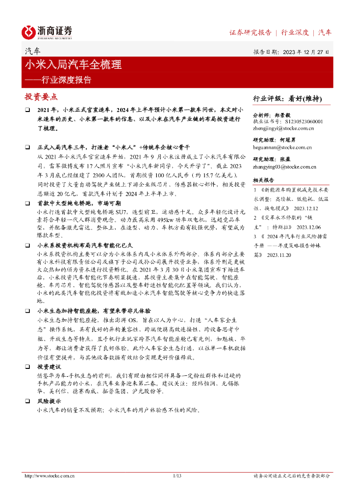 浙商证券:小米入局汽车全梳理——汽车行业深度报告.pdf