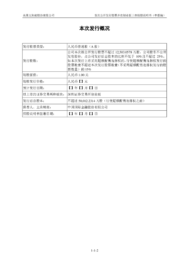 高景太阳能股份有限公司深交所创业板IPO上市招股说明书.pdf
