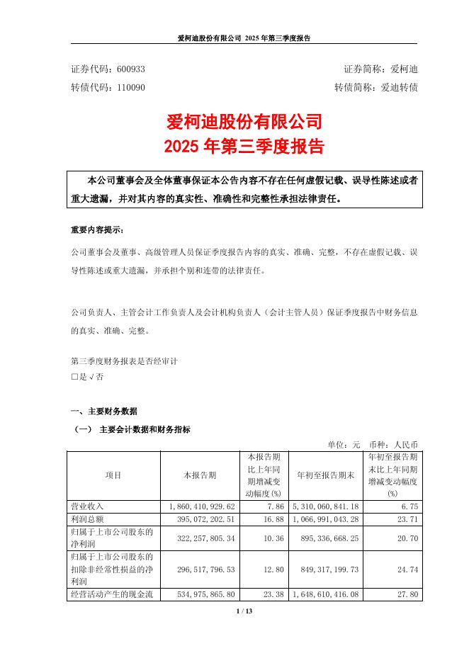 110090-爱柯迪:2025年第三季度报告.pdf