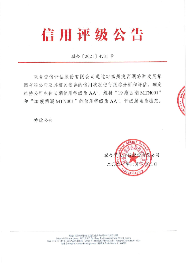 联合资信:扬州瘦西湖旅游发展集团有限公司2021年跟踪评级报告.pdf