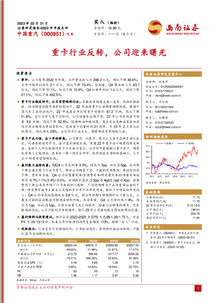 西南证券:中国重汽(000951)-重卡行业反转,公司迎来曙光.pdf