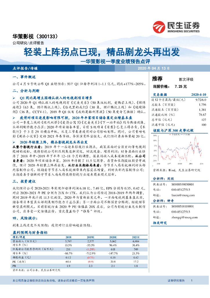 民生证券:华策影视一季度业绩预告点评:轻装上阵拐点已现,精品剧龙头再出发.pdf