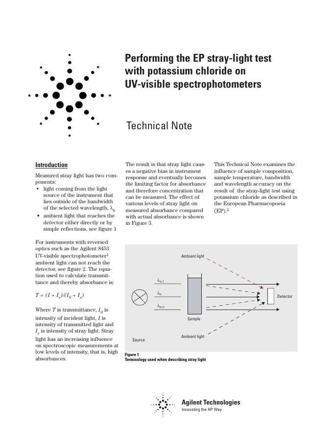 Performing the EP stray-light test with potassium chloride on UV-visible spectrophotometers 技术手册.pdf