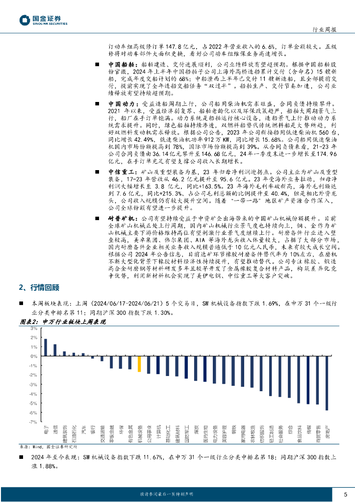 国金证券:机械行业周报:看好工程机械、铁路装备、船舶、矿山机械景气度提升.pdf