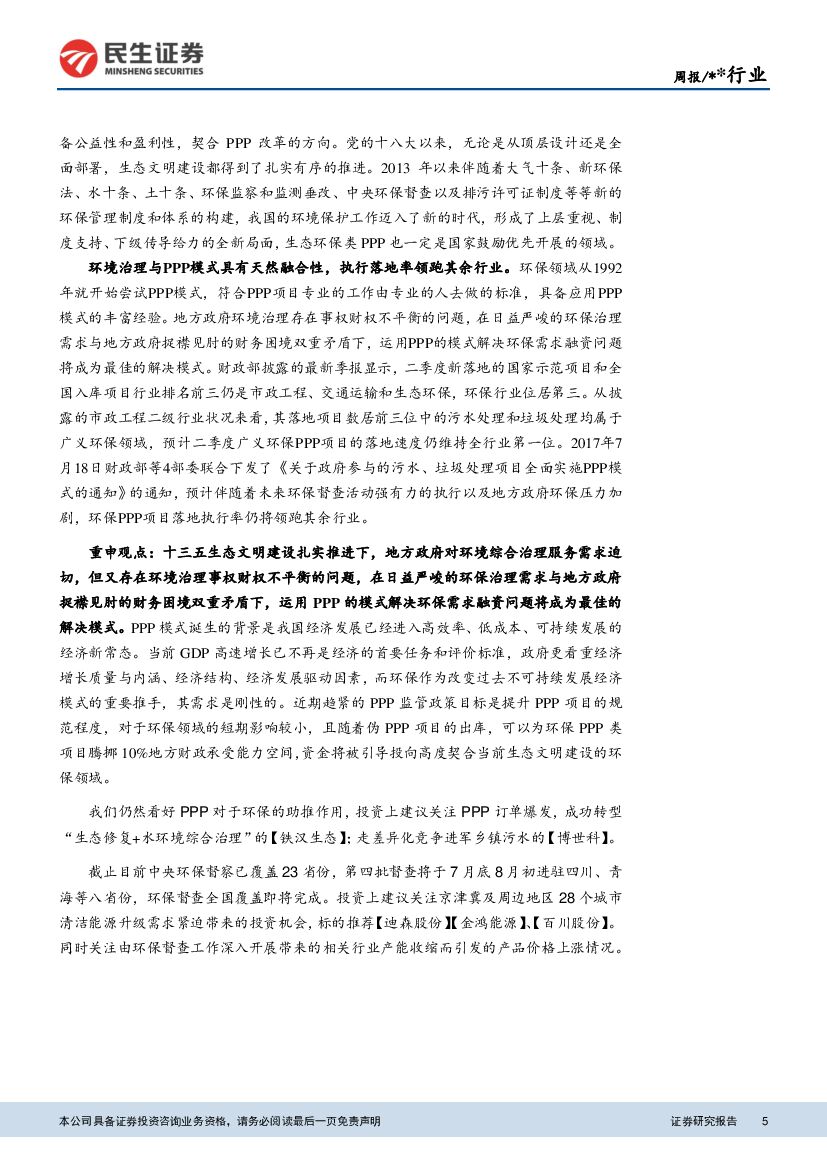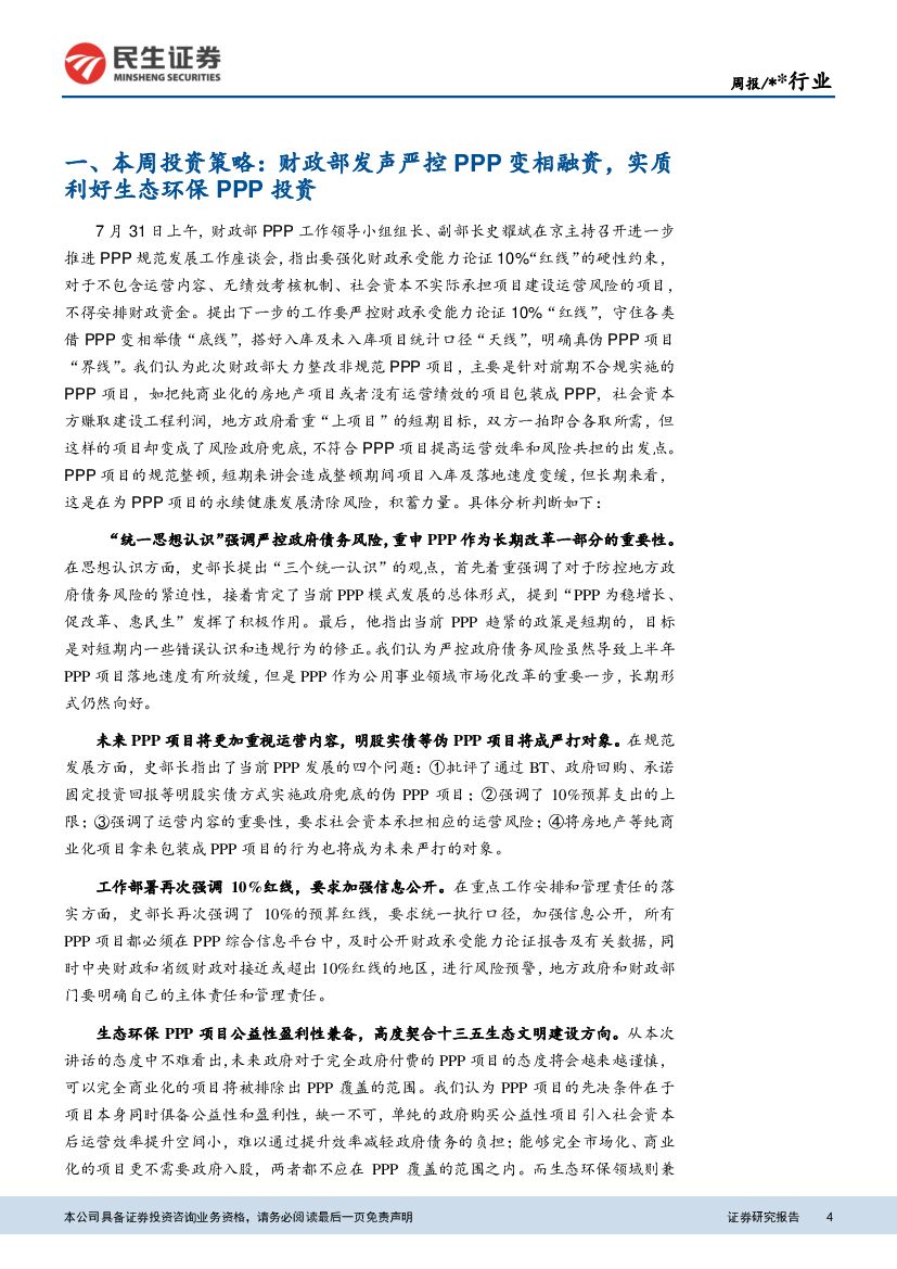 民生证券:环保行业周报:财政部发声严控PPP变相融资,实质利好生态环保PPP投资.pdf