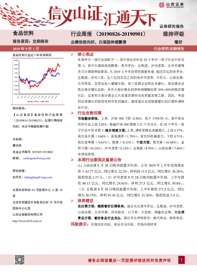 山西证券:食品饮料行业周报:业绩依然向好,白酒股持续飘香.pdf