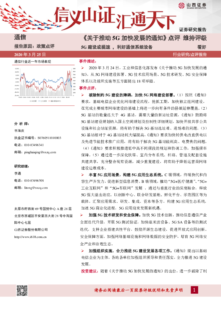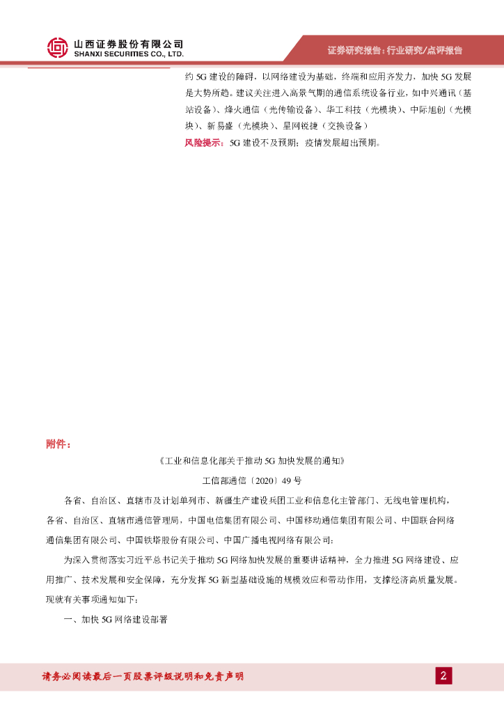 山西证券:《关于推动5G加快发展的通知》点评:5G建设或提速,利好通信系统设备.pdf