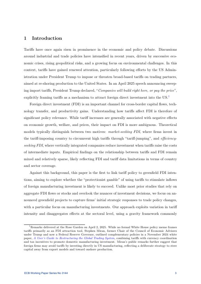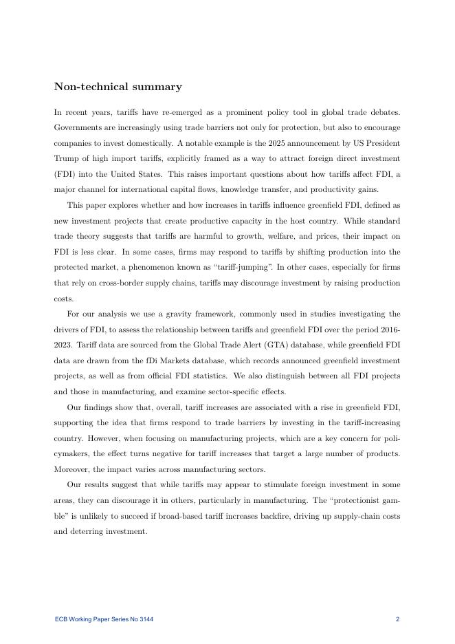 欧洲央行:保护主义赌博:关税如何影响绿地外国直接投资(英文版).pdf