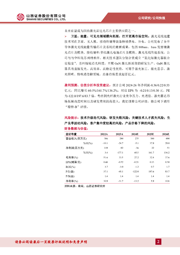 山西证券:长光华芯(688048)-光纤激光市场竞争激烈致业绩下滑,光通信等新动能正在酝酿公司研究/公司快报.pdf