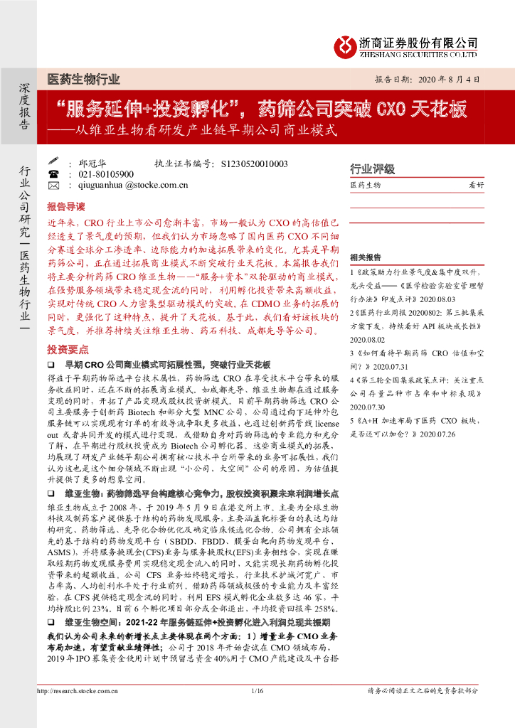 浙商证券:医药生物行业:从维亚生物看研发产业链早期公司商业模式:“服务延伸+投资孵化”,药筛公司突破CXO天花板.pdf