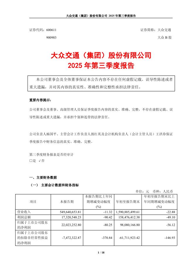 600611-大众交通:大众交通(集团)股份有限公司2025年第三季度报告.pdf