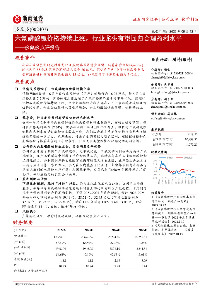 浙商证券:多氟多点评报告:六氟磷酸锂价格持续上涨,行业龙头有望回归合理盈利水平.pdf