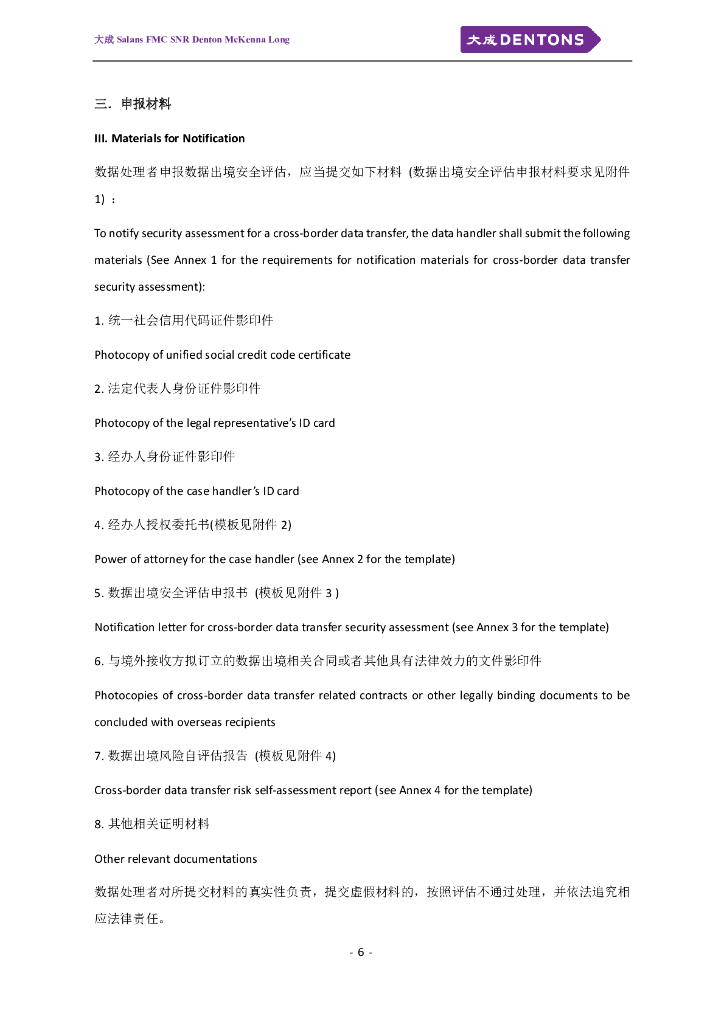 大成Dentons:数据出境安全评估申报指南(第一版)【中英对照版】.pdf
