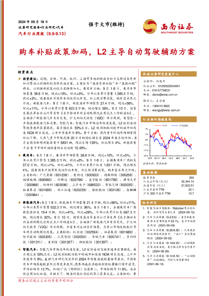 西南证券:汽车行业周报:购车补贴政策加码,L2主导自动驾驶辅助方案.pdf