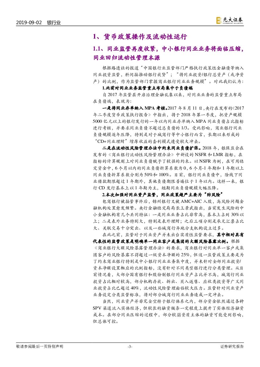 光大证券:银行业:流动性周报第19期:中小银行同业业务面临收缩,同业回归流动性管理本源.pdf