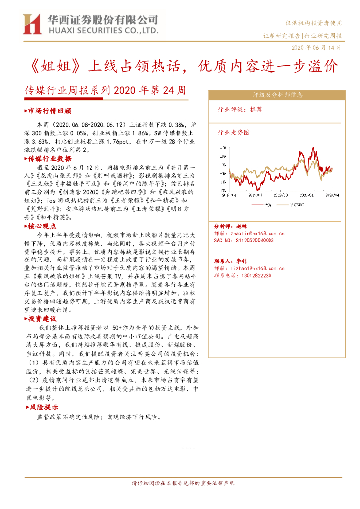 华西证券:传媒行业周报系列2020年第24周:《姐姐》上线占领热话,优质内容进一步溢价.pdf