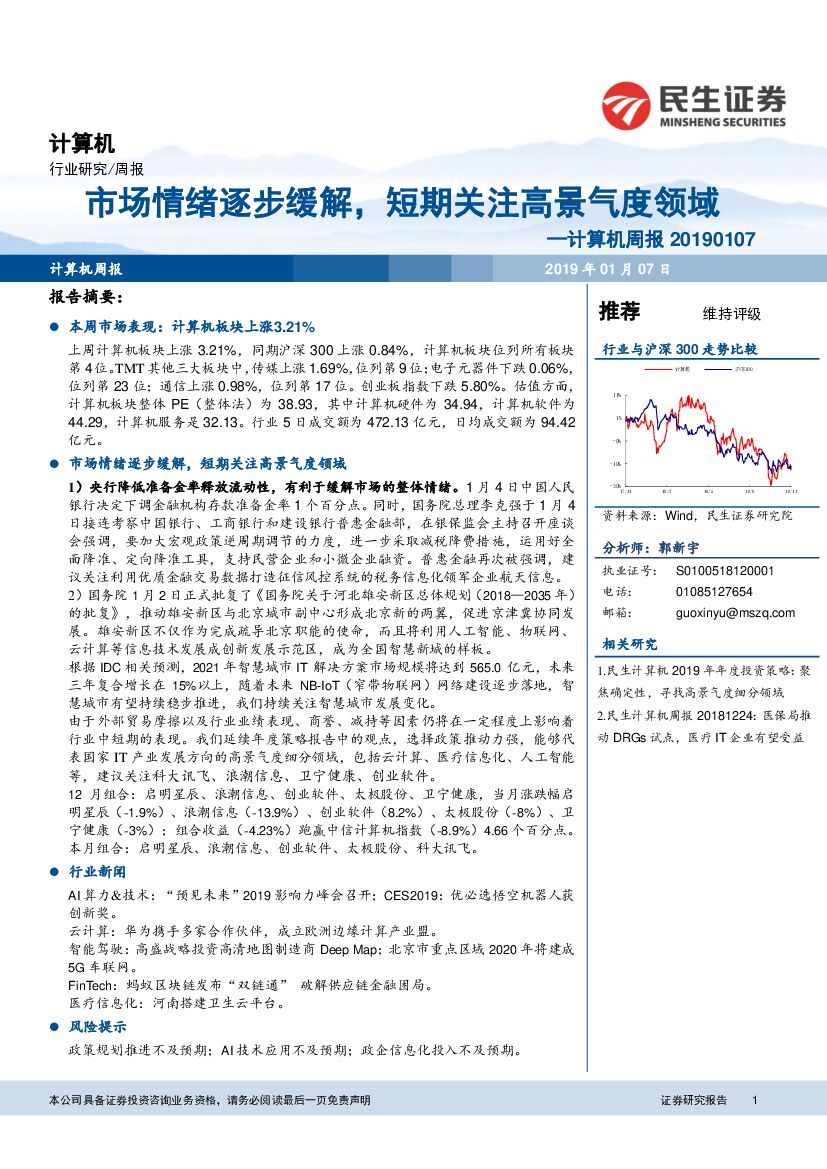 民生证券:计算机周报:市场情绪逐步缓解,短期关注高景气度领域.pdf