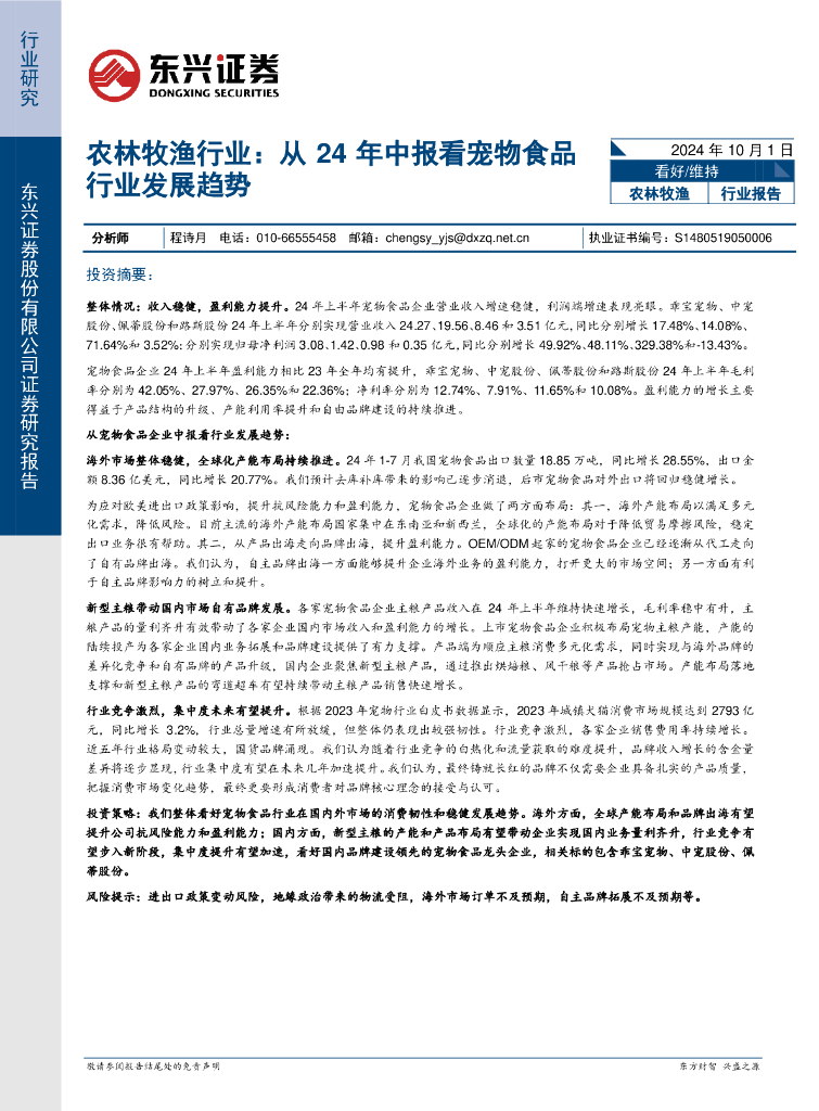 东兴证券:农林牧渔行业:从24年中报看宠物食品行业发展趋势.pdf