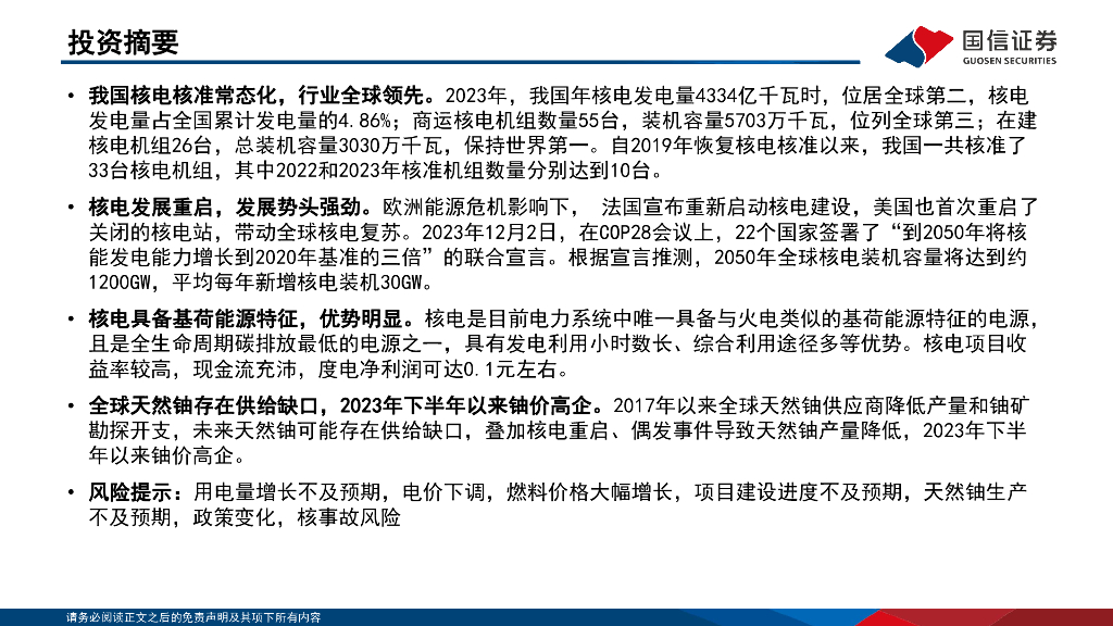 国信证券:核电产业链专题:核电优势明显,复苏势头强劲.pdf