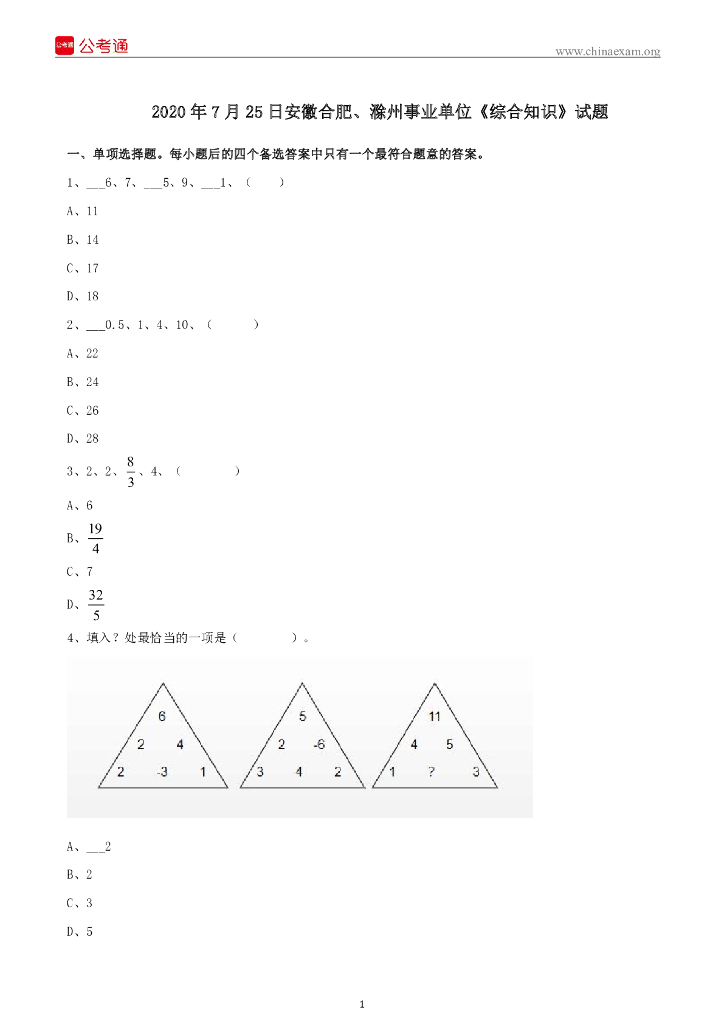 2020年7月25日安徽合肥、滁州事业单位《综合知识》试题.pdf