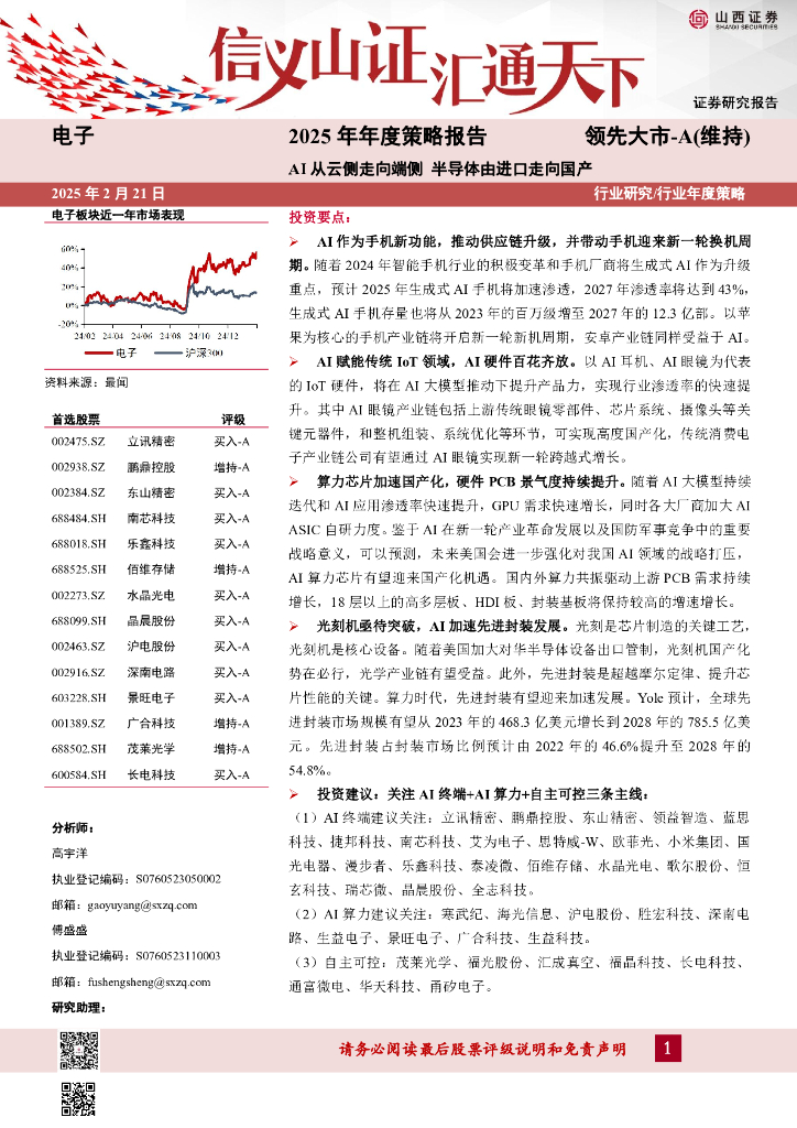 山西证券:电子2025年年度策略报告:AI从云侧走向端侧半导体由进口走向国产.pdf