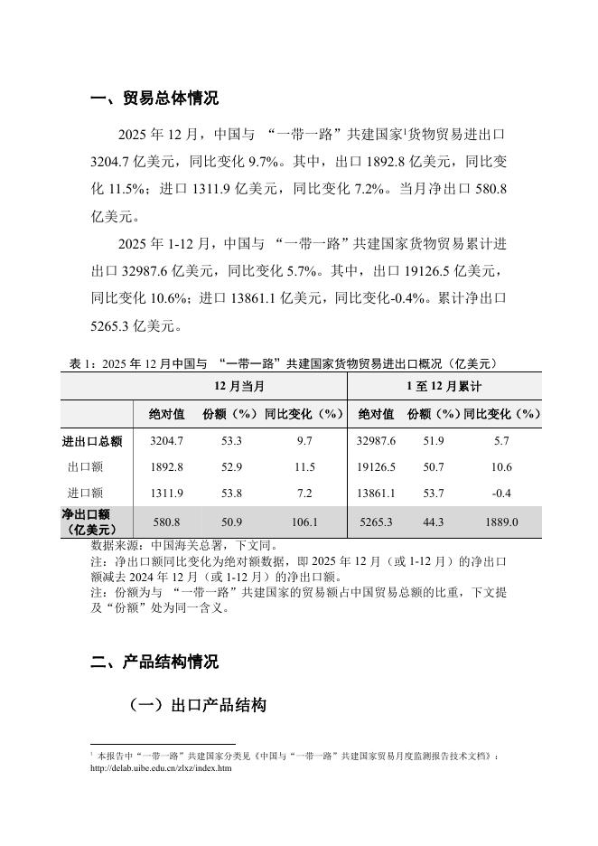对外经济贸易大学:中国与 “一带一路”共建国家货物贸易月度监测报告(2025年1-12月).pdf