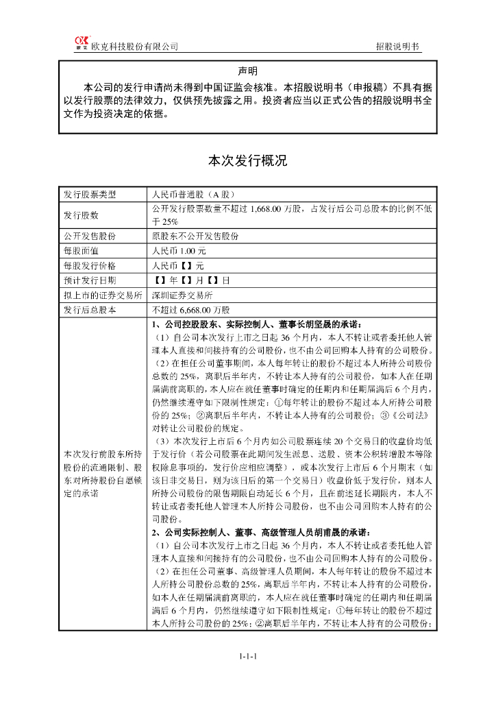 欧克科技股份有限公司深交所主板IPO上市招股说明书.pdf
