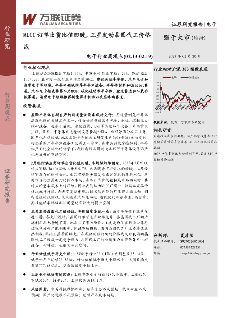 万联证券:电子行业周观点:MLCC订单出货比值回暖,三星发动晶圆代工价格战.pdf