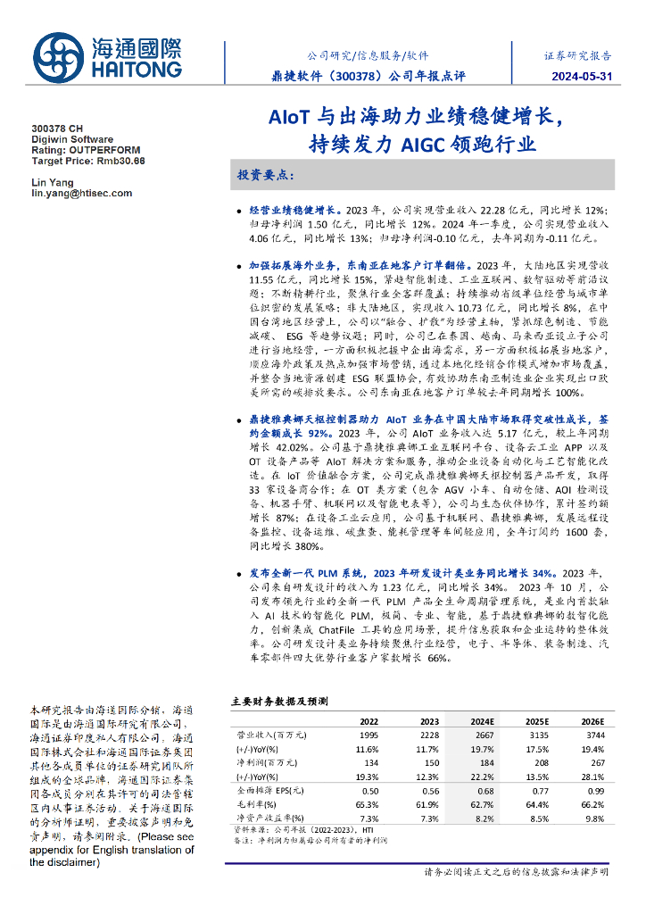 海通国际:鼎捷软件(300378)-公司年报点评:AIoT与出海助力业绩稳健增长,持续发力AIGC领跑行业.pdf