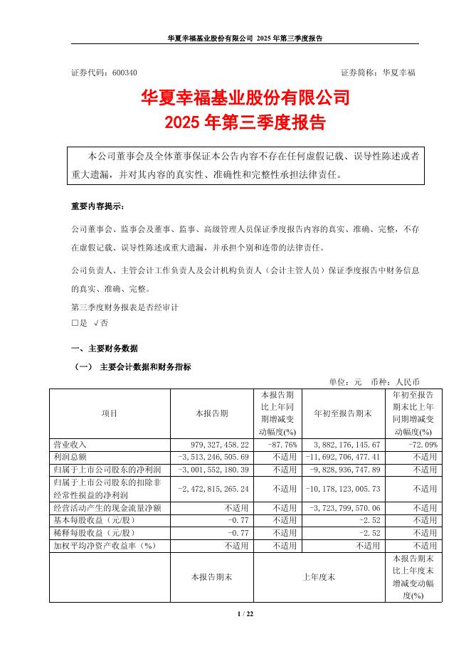 600340-华夏幸福:华夏幸福2025年第三季度报告.pdf