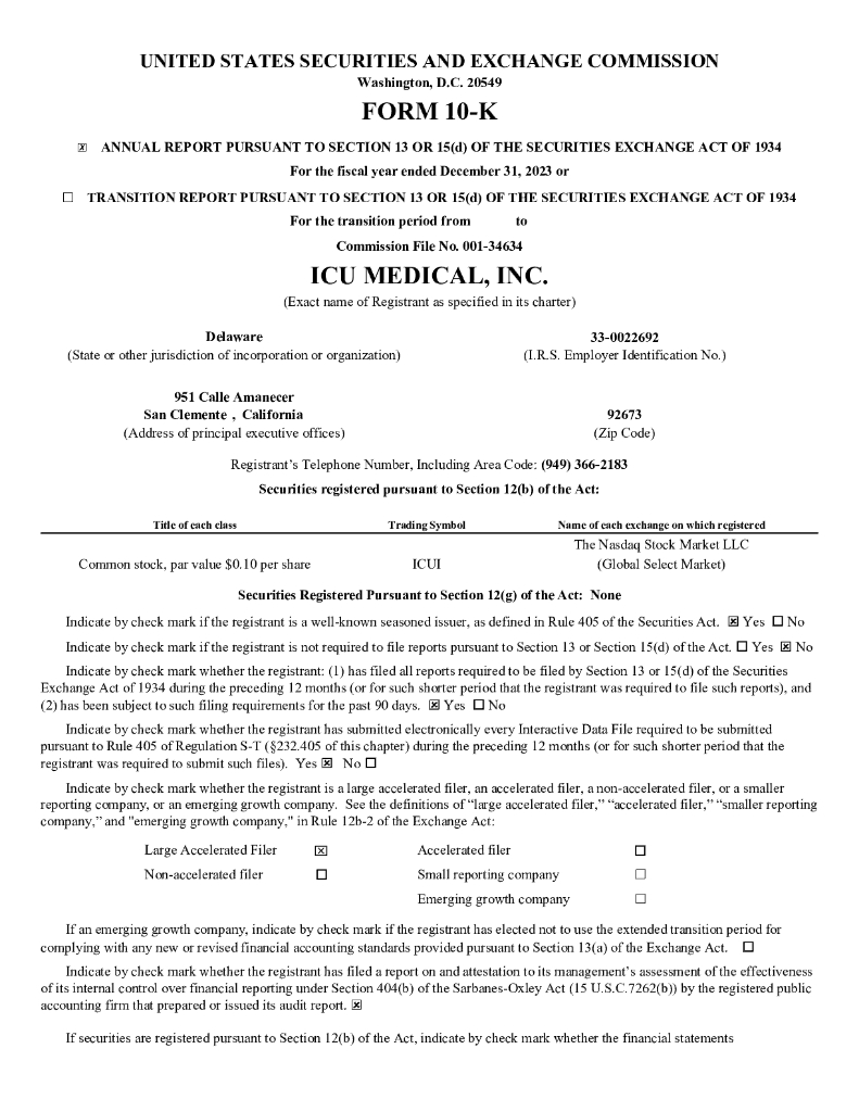 ICU Medical, Incorporated(ICUI)2023财年年度报告(英文版).pdf