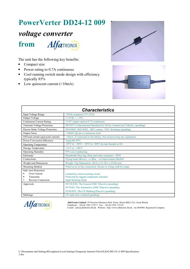 ALFATRONIX -PowerVerter DD24-12 009 voltage converter 数据手册.pdf