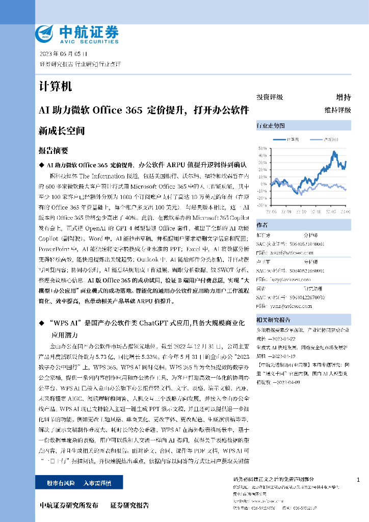 中航证券:计算机:AI助力微软Office 365定价提升,打开办公软件新成长空间.pdf